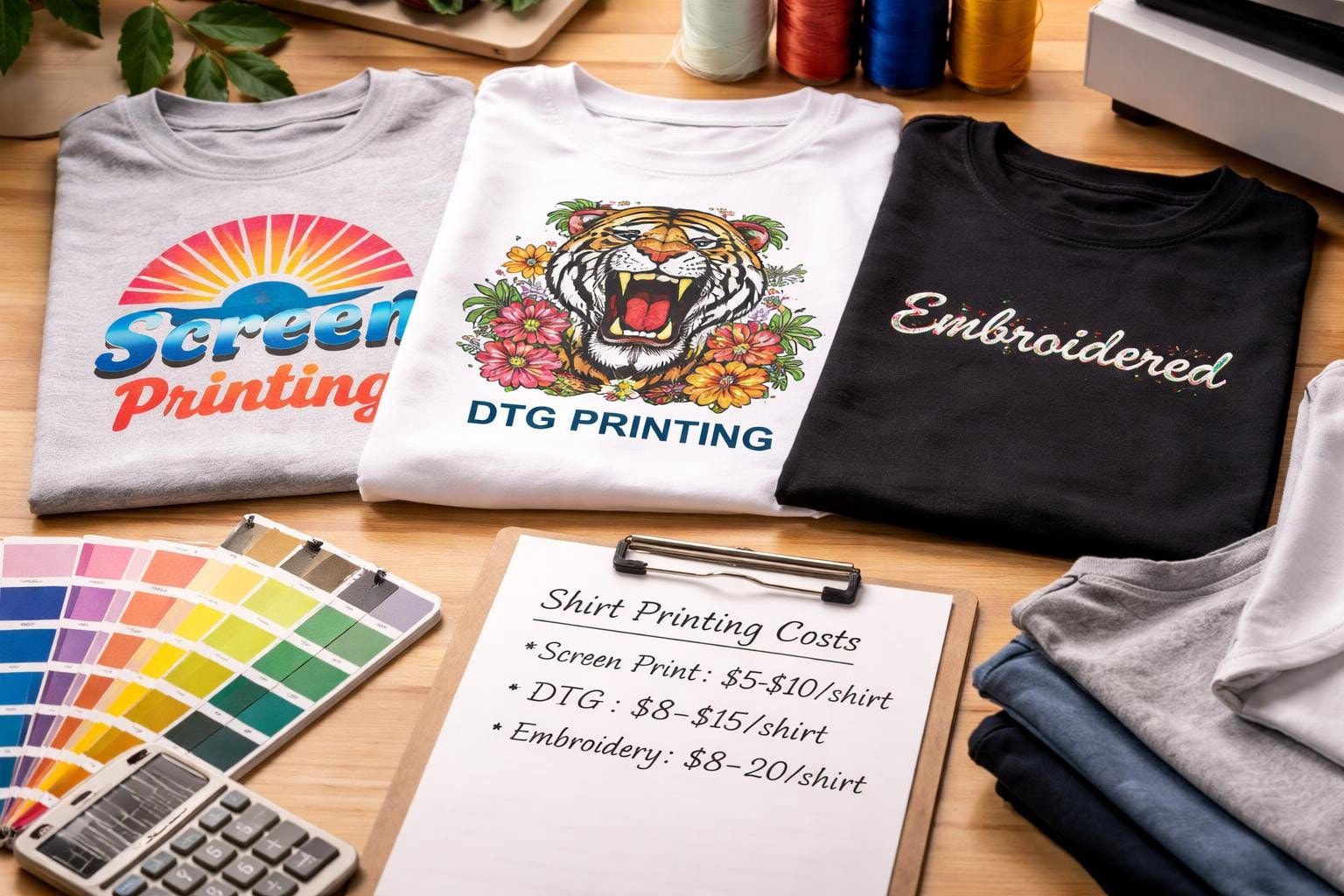- Direct-to-garment: $8-$25 per shirt